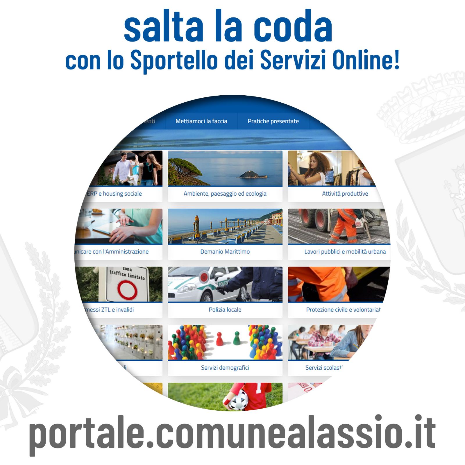 Il portale sarà infatti attivo 24 ore su 24 e racchiude tantissimi settori del Comune: tributi, servizi demografici, scolastici, sociali, ambiente e territorio, lavori pubblici, sport e tempo libero e molto altro.