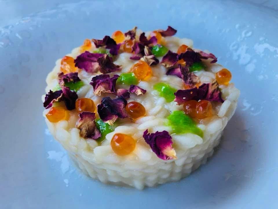 I fiori e le verdure con le erbe aromatiche accompagnate dal frutto delle api e uno speciale foie gras vegetale.